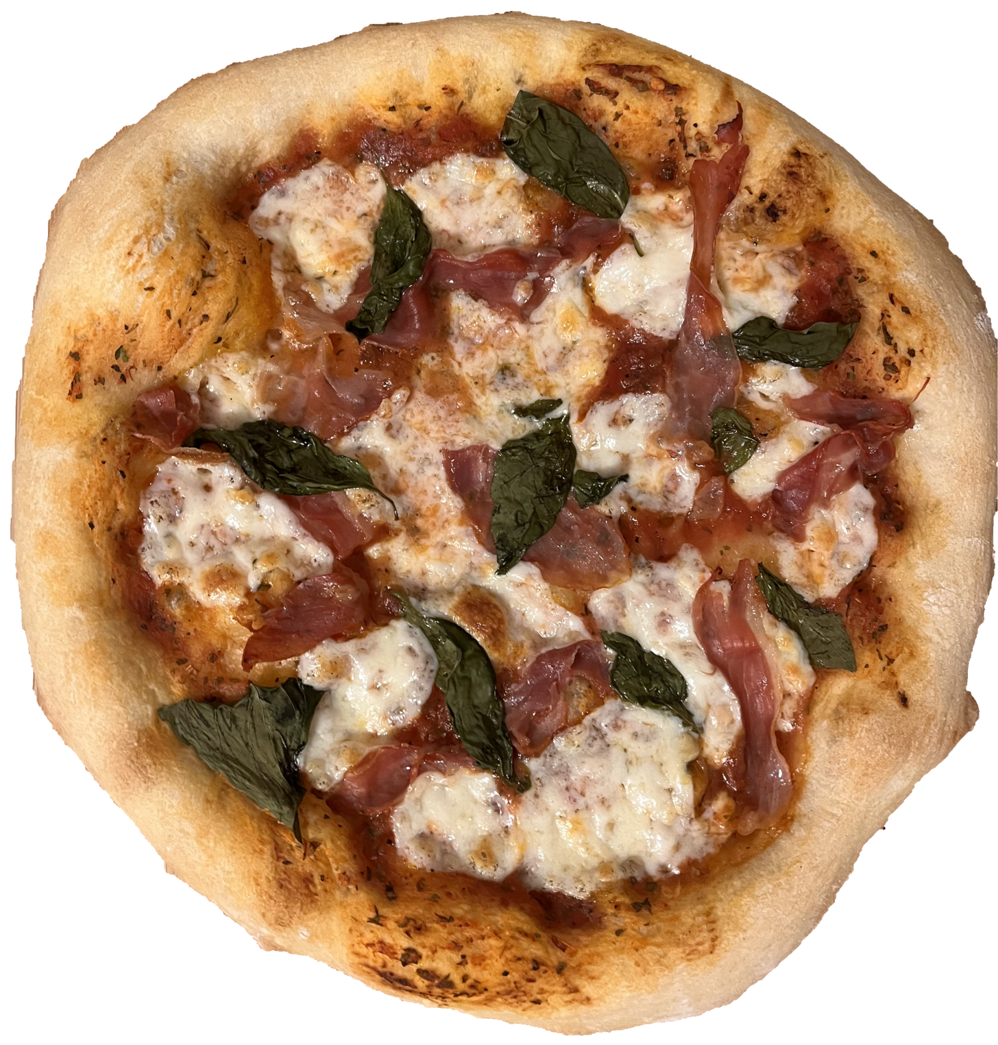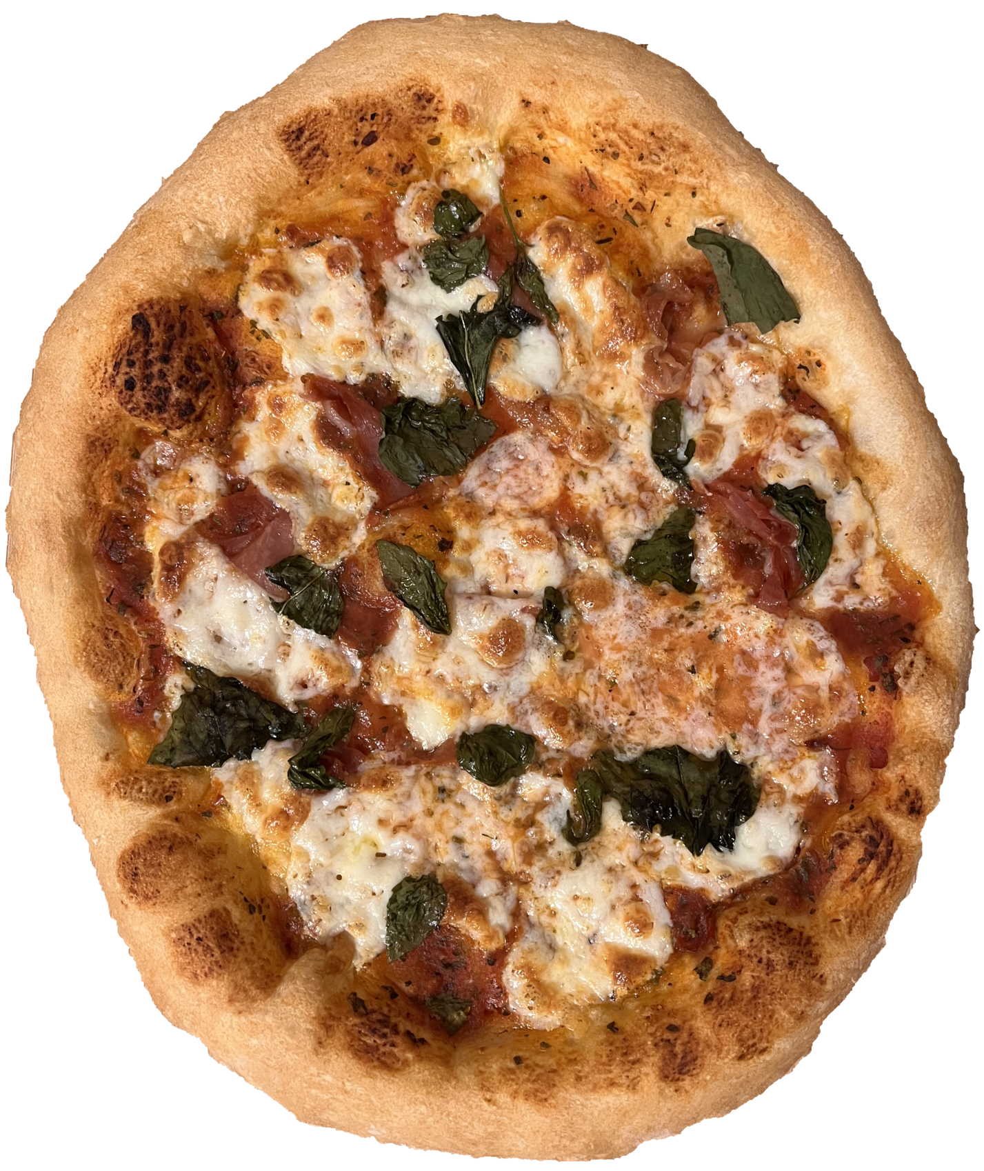 The toppings for the pizzas are a combination of the following: Prosciutto, basil, fresh mozzarella & cheddar cheese. Of course, with homemade sauce. BTW, my homemade sauce is really just canned tomato sauce with the seasonings I want! Try it next time, it's super easy.